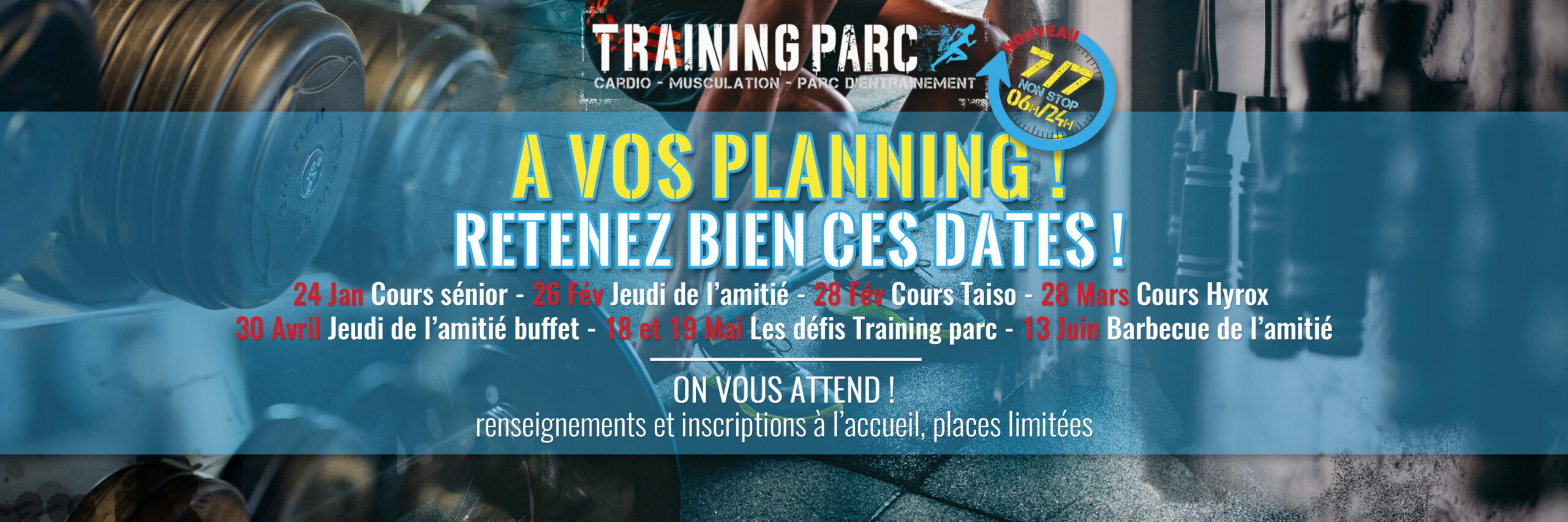 Toute l'année, Training Parc organise de nombreux évènements tels que des soirées, repas de l'amitié et des compétitions, afin de renforcer les liens entre les membres.